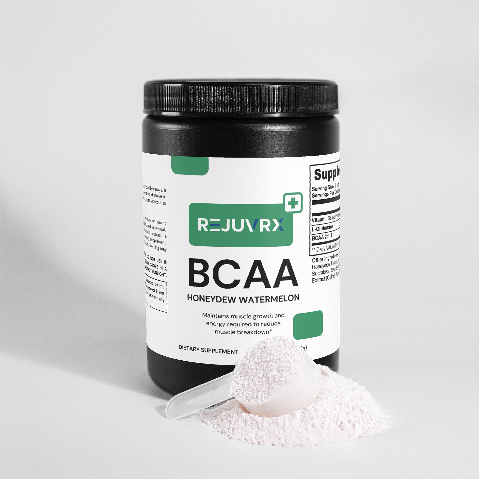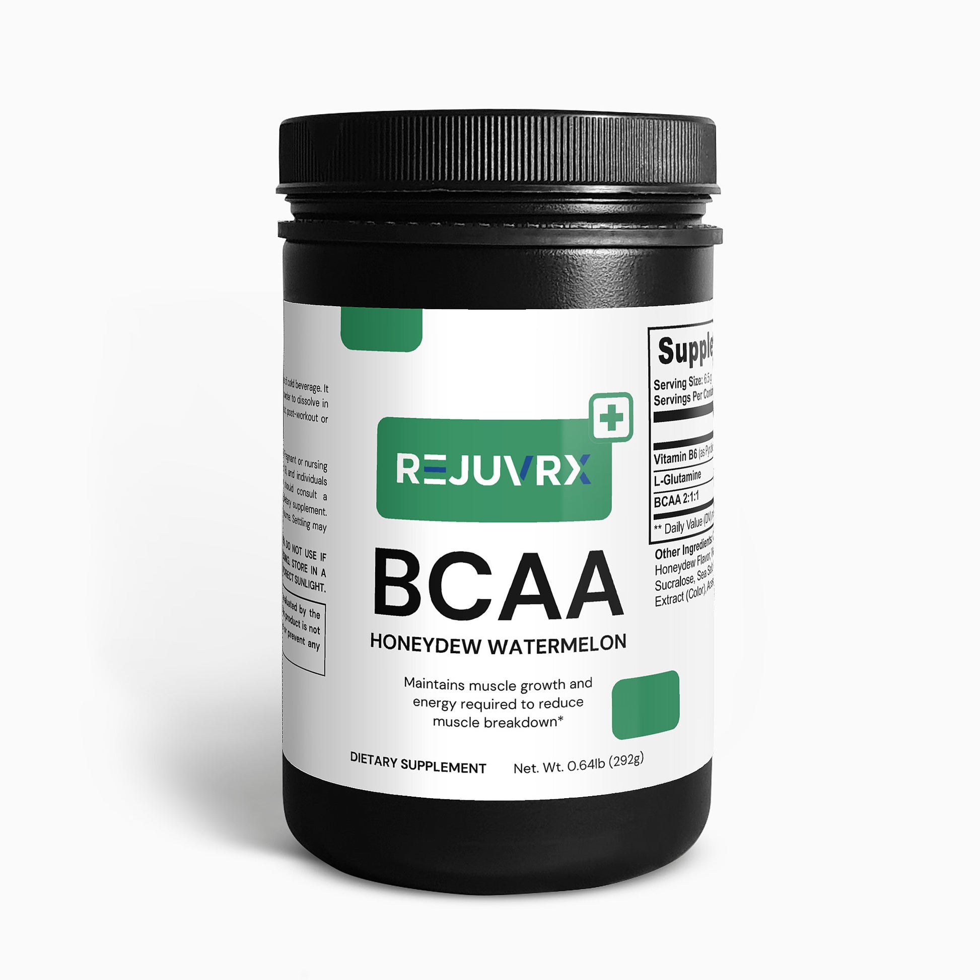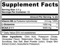 Ingredients: Vitamin B6 (as Pyridoxine Hydrochloride), L-Glutamine, BCAA 2:1:1, Citric Acid, Honeydew Flavor, Watermelon Flavor, Potassium Citrate, Silicon Dioxide, Sucralose, Sea Salt, Beet Powder (Color), Grape Skin Extract (Color), Acesulfame Potassium.
